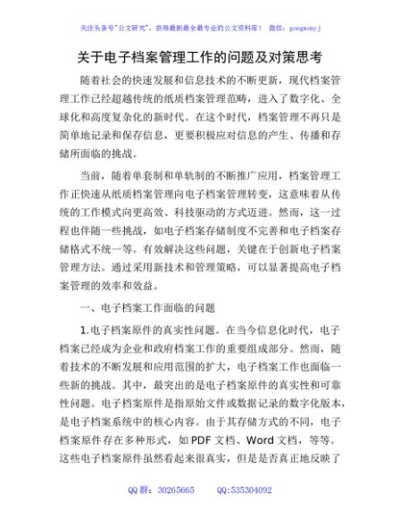 / 电子档案管理工作的问题及对策思考(调研报告)