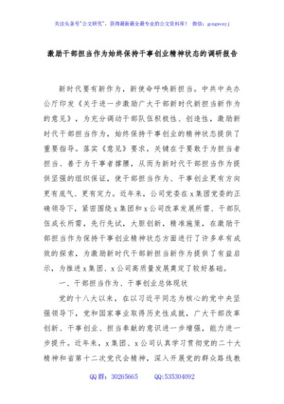 / 激励干部担当作为始终保持干事创业精神状态的调研报告
