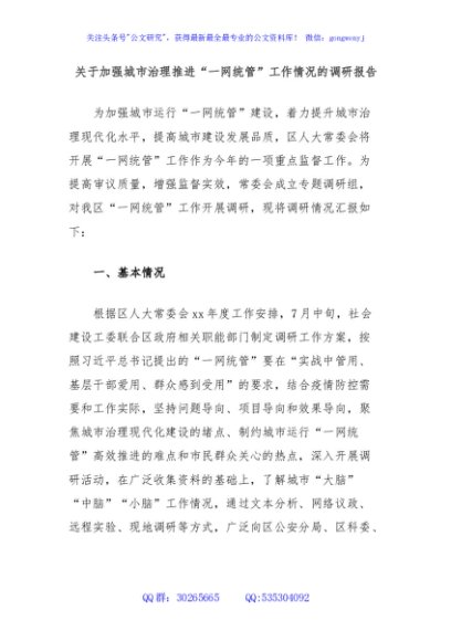 / 关于加强城市治理推进“一网统管”工作情况的调研报告