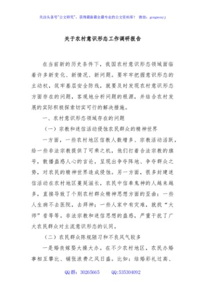 / 关于农村意识形态工作调研报告