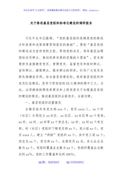 / 关于推进基层党组织标准化建设的调研报告