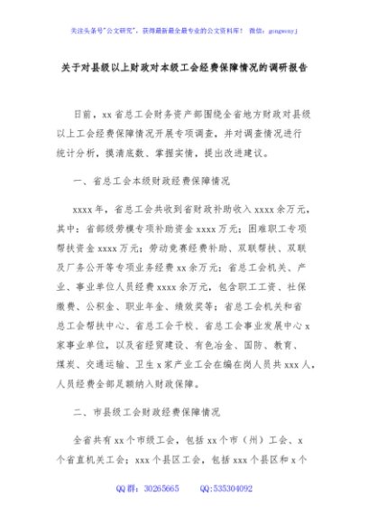 / 关于对县级以上财政对本级工会经费保障情况的调研报告