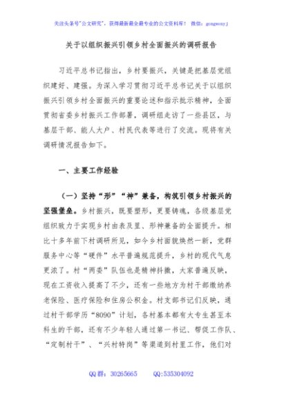 / 关于以组织振兴引领乡村全面振兴的调研报告