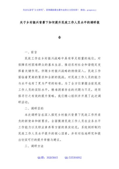 / 关于乡村振兴背景下如何提升民政工作人员水平的调研报告