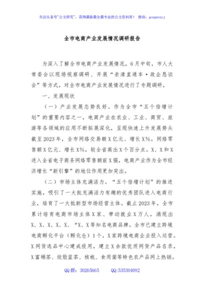 / 全市电商产业发展情况调研报告