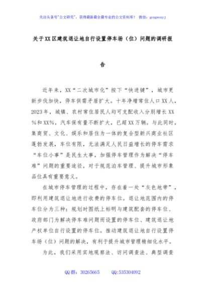 / 关于XX区建筑退让地自行设置停车场(位)问题的调研报告