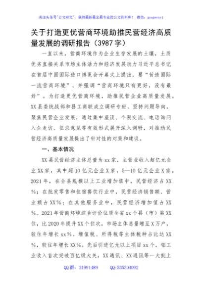 / 关于打造更优营商环境助推民营经济高质量发展的调研报告