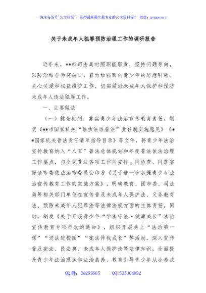 / 关于未成年人犯罪预防治理工作的调研报告