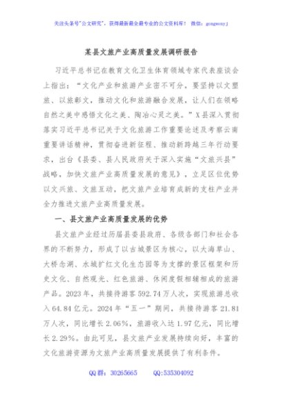 / 某县文旅产业高质量发展调研报告