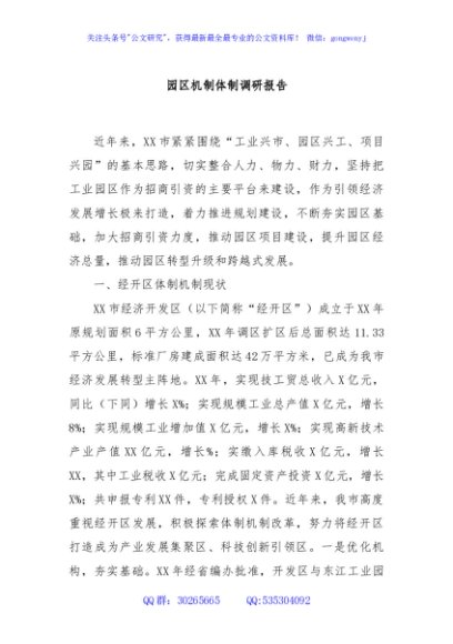 / 园区机制体制调研报告