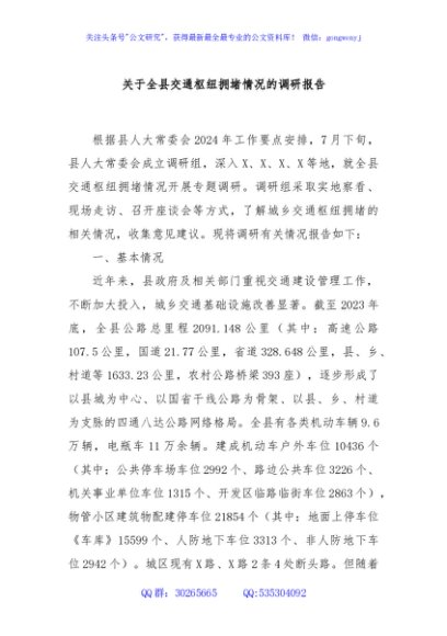 / 关于全县交通枢纽拥堵情况的调研报告