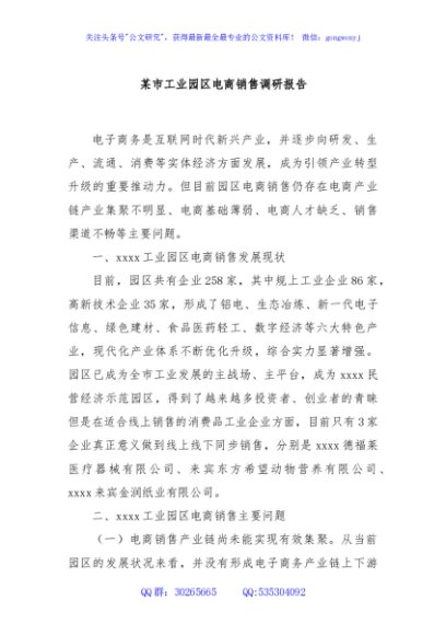 / 某市工业园区电商销售调研报告
