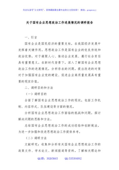 / 关于国有企业思想政治工作进展情况的调研报告