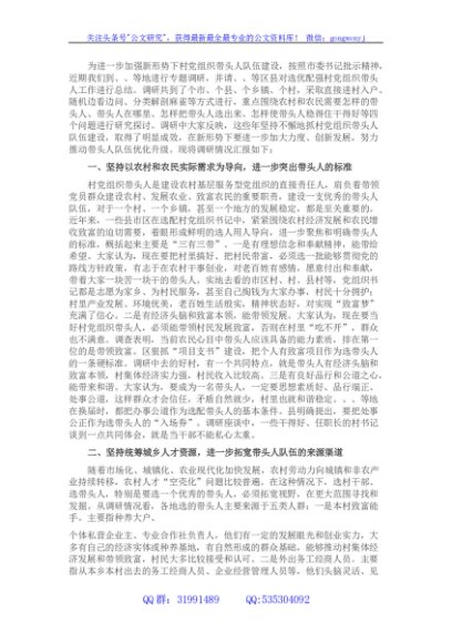 关于加强村党组织带头人队伍建设的调研报告