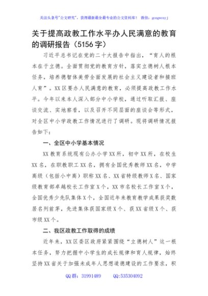 / 关于提高政教工作水平办人民满意的教育的调研报告