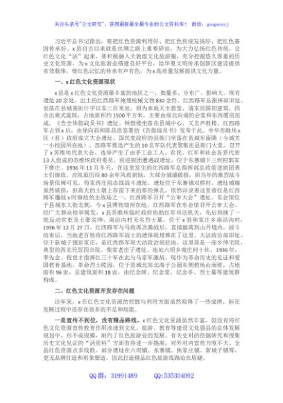 / 县委宣传部关于红色文化资源发展的调研报告