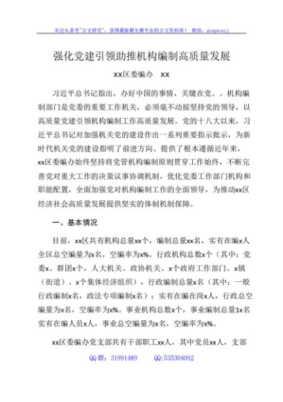 / 强化党建引领助推机构编制高质量发展调研报告