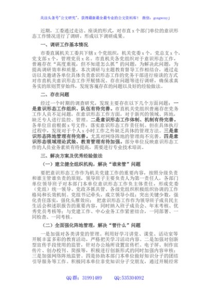 / 市直属机关关于如何做好意识形态工作的调研报告