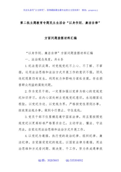 第二批主题教育专题民主生活会“对照学习贯彻新思想”方面问题查摆材料汇编