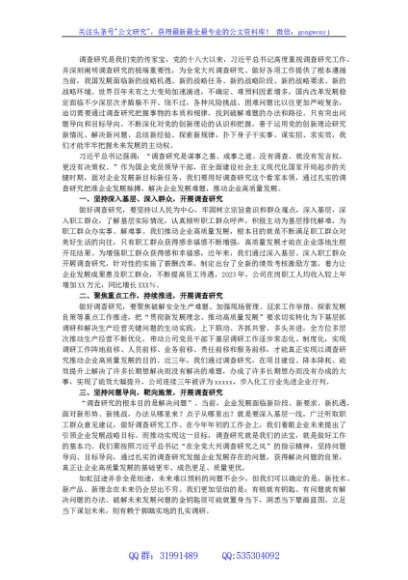 / 读书班研讨发言:以调查研究攻破难题开创公司发展新篇章