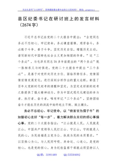 / 县区纪委书记三个务必发言材料
