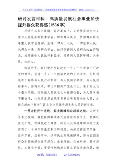 / 研讨发言材料:高质量发展社会事业加快提升群众获得感