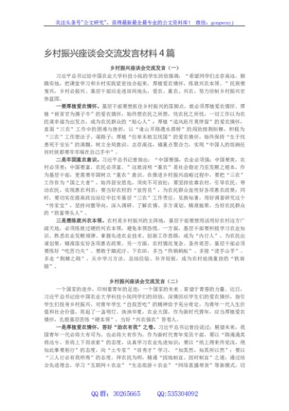 / 乡村振兴座谈会交流发言材料4篇