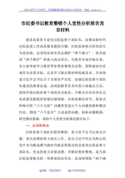 / 市纪委书记教育整顿个人党性分析报告发言材料