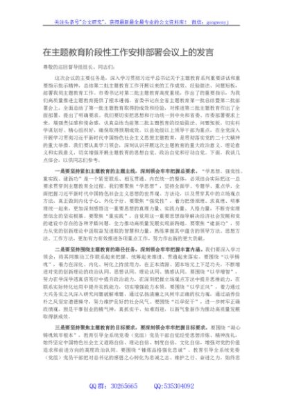 / 在主题教育阶段性工作安排部署会议上的发言