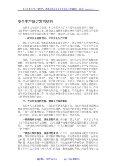 / 安全生产研讨发言材料