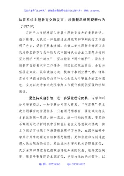 法院系统主题教育交流发言:领悟新思想展现新作为