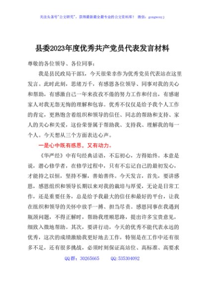 / 县委2023年度优秀共产党员代表发言材料