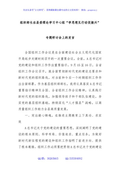 / 组织部长在县委理论学习中心组“学思想见行动促振兴”专题研讨会上的发言