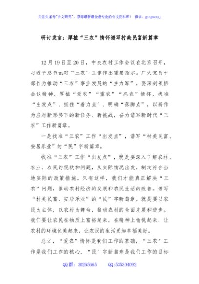 / 研讨发言:厚植“三农”情怀谱写村美民富新篇章