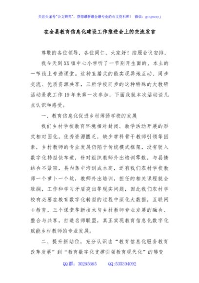 / 在全县教育信息化建设工作推进会上的交流发言