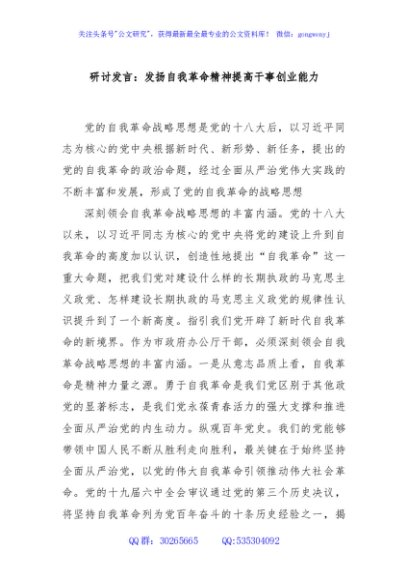 未生成预览图,长按二维码添加 研讨发言:发扬自我革命精神提高干事创业能力 - 公文研究