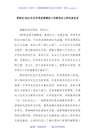 / 学院在2024年全市思政课建设工作推进会上的交流发言