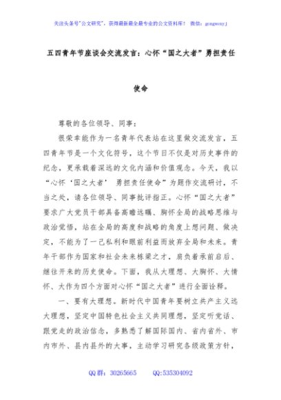 / 五四青年节座谈会交流发言:心怀“国之大者”勇担责任使命