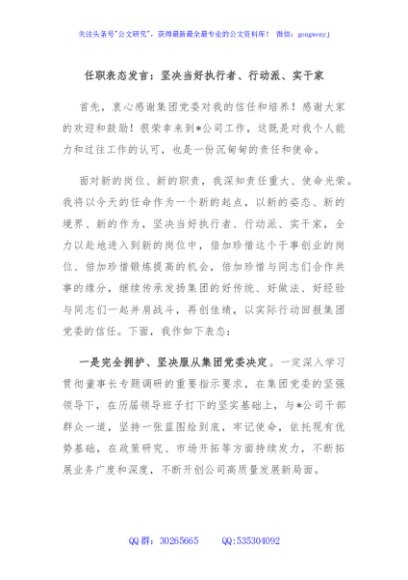 / 任职表态发言:坚决当好执行者、行动派、实干家