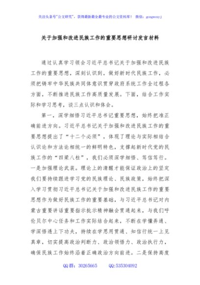 / 关于加强和改进民族工作的重要思想研讨发言材料