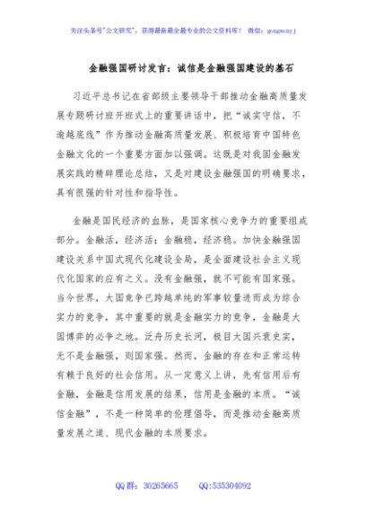 / 金融强国研讨发言:诚信是金融强国建设的基石