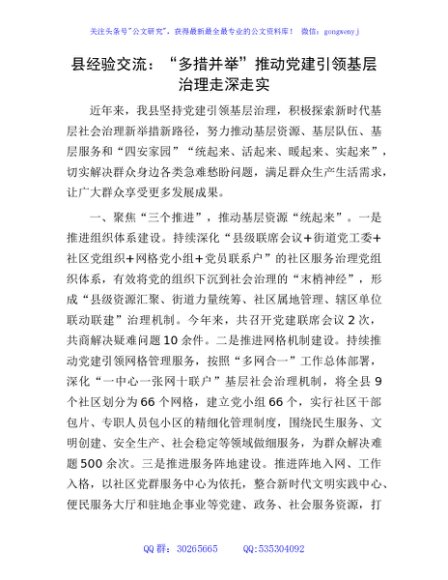 县经验交流:“多措并举”推动党建引领基层治理走深走实
