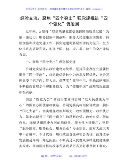 / 经验交流:聚焦“四个突出”强党建 推进“四个强化”促发展