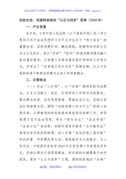 / 经验交流:党建赋能描绘“公正与效率”答卷(2560字)