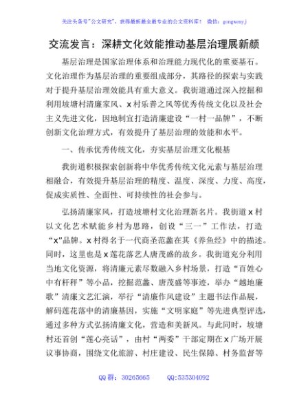 / 交流发言:深耕文化效能 推动基层治理展新颜