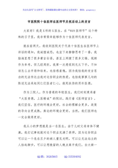 / 市医院院十佳医师在医师节庆祝活动上的发言