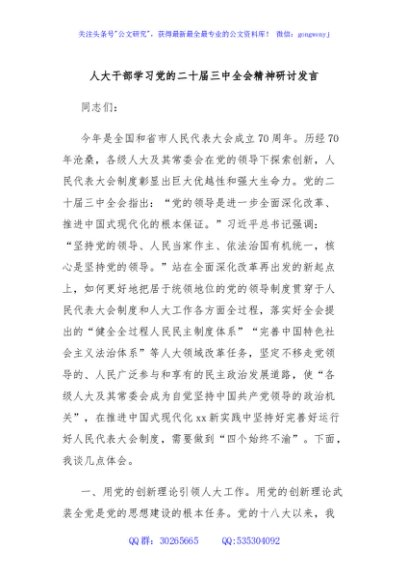 / 人大干部学习党的二十届三中全会精神研讨发言