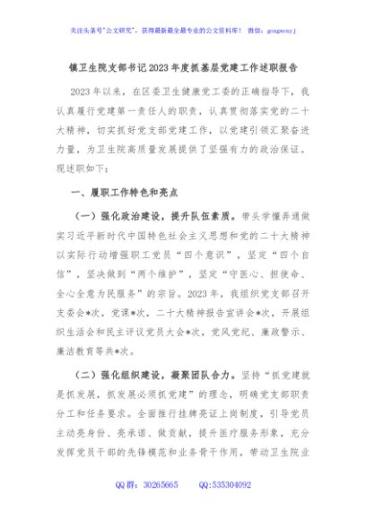 / 镇卫生院支部书记2023年度抓基层党建工作述职报告