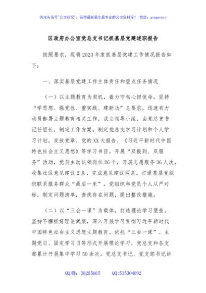 / 区政府办公室党总支书记抓基层党建述职报告