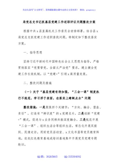 / 局党总支书记抓基层党建工作述职评议问题整改方案